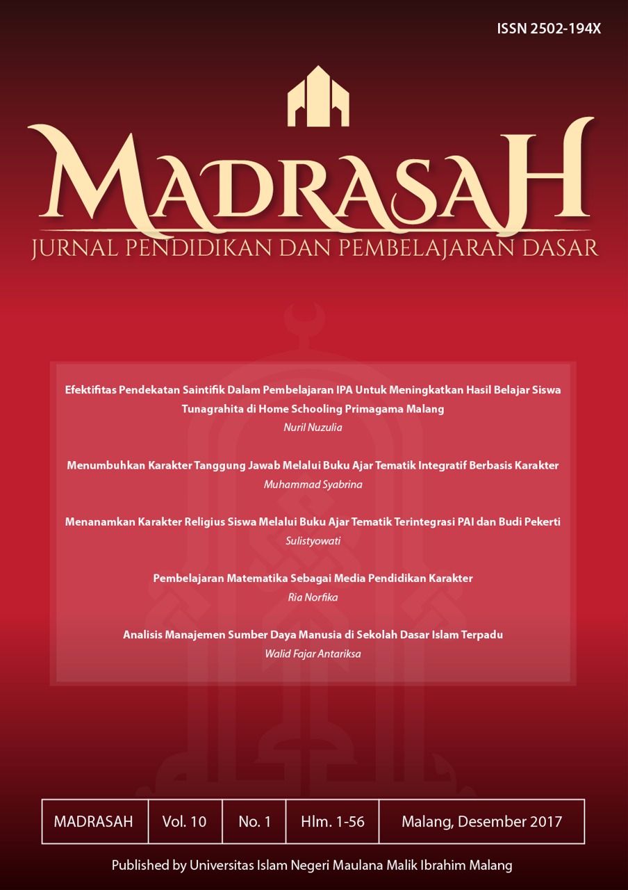| Vol 7, No 1 (2014): Madrasah: Jurnal Pendidikan dan Pembelajaran Dasar | Efektivitas Pembelajaran Tematik Pada Materi Pendidikan Agama Islam (PAI) Di MI Hidayatul Islam Mentoro Tuban | Abstract PDF |